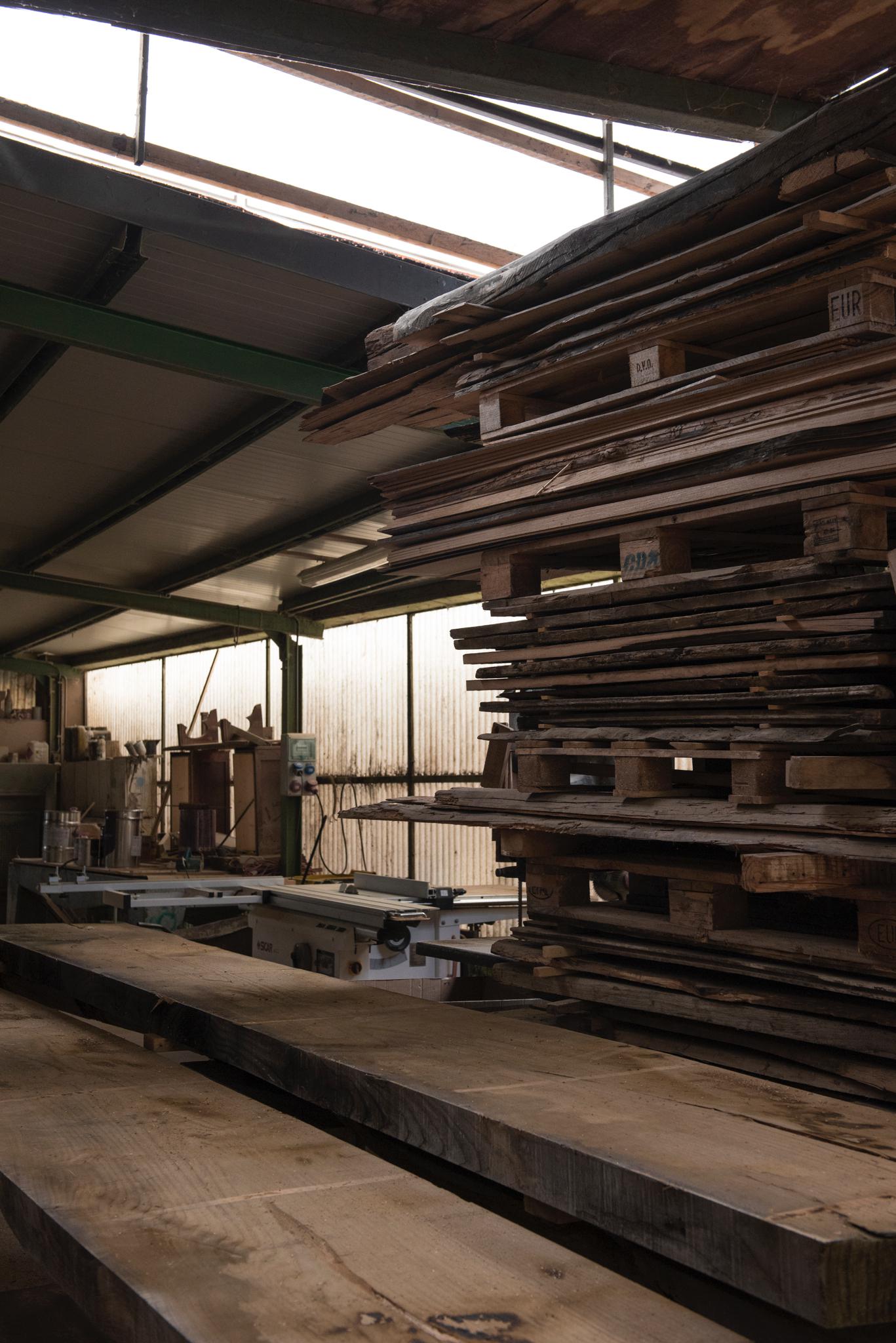 Il procedimento usato da Marco per il recupero del legno è il risultato di anni di lavoro, di prove e tentativi. Un processo lungo, laborioso e impegnativo sia per l’attrezzatura che per l’artigiano all’opera. Spazzolamento e rimozione dei chiodi, lame e coltelli rovinate durante la lavorazione, questi sono solo una piccola parte degli interventi necessari al completamento del lavoro.